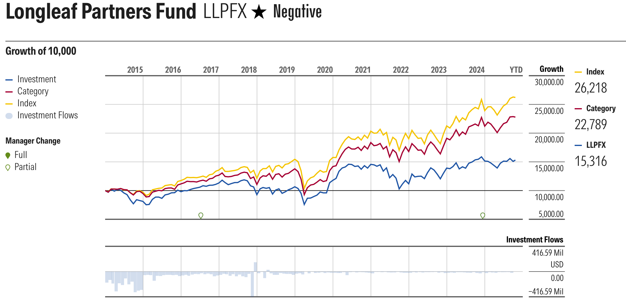 For all that I can see, the managers of Longleaf Companions proceed to try to do issues the “proper” means. They’re skilled value-investing managers that confirmed talent and invested solely in high-conviction picks. That they had early success and the liberty to speculate nonetheless they selected. They’ve proven persistence and the willingness to keep away from asset bloat. However even with all that they didn’t beat the S&P 500 and even the vast majority of their fund friends over the past decade.