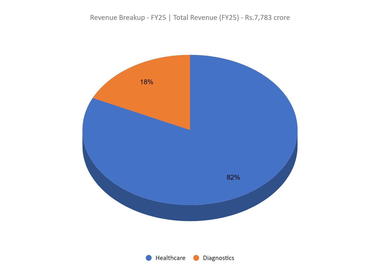 - FY25 – The corporate generated income of Rs.7,783 crore, a rise of 13% in comparison with FY24 income. The expansion was primarily pushed by ~15% progress in hospital enterprise income which contributes 84% to the corporate’s income. EBITDA is at Rs.1,655 crore, up by 27% YoY. The corporate posted a internet revenue of Rs.809 crore, a progress of 25% YoY. EBITDA margin has improved from 19% to 21% and internet revenue margin improved from 9% to 10%. Hospital enterprise has improved its EBITDA margin from 19% to 21% and diagnostics arm EBITDA margin from 17% to twenty%.