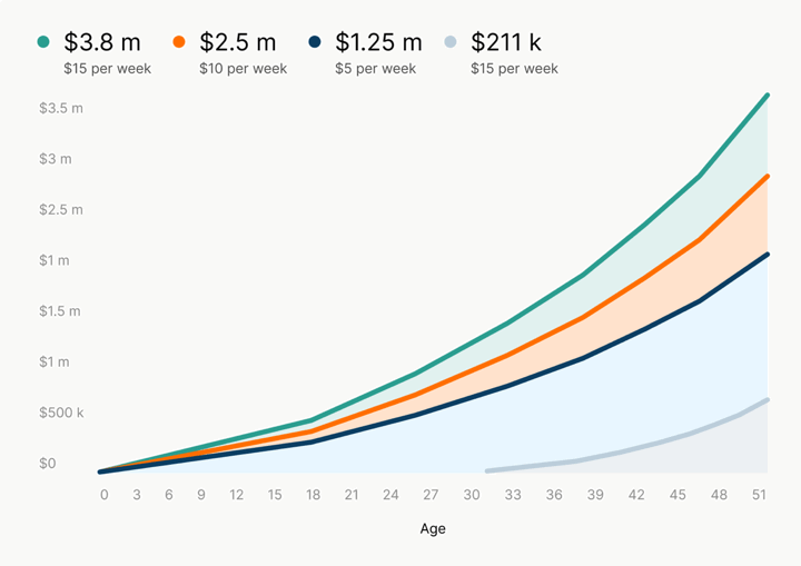 “If a father or mother invests simply $10 per week from their youngster’s delivery to age 18 after which leaves it to develop for 50 years, their youngster may have a $1 million nest egg, assuming 8% compounding annual returns,” states Dave Fortin, CFA, co-founder of FutureMoney.