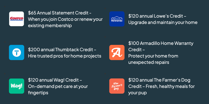 • 3X Mesa Factors on purchases categorized underneath Dwelling Decor, Dwelling Enchancment, Basic Contractors, Cable & Streaming Companies, Dwelling Insurance coverage, Property Taxes, Upkeep, Telecom, Utilities and daycare. 2X Mesa Factors on groceries, gasoline, EV charging. (Notice: Goal, Amazon, Walmart, Costco, Sam’s Membership do NOT depend as 2X.) 1X Mesa Factors per $1 spent on all different eligible purchases.