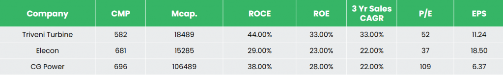 Opponents: Elecon Engineering Firm Ltd, CG Energy & Industrial Options Ltd, and so on.